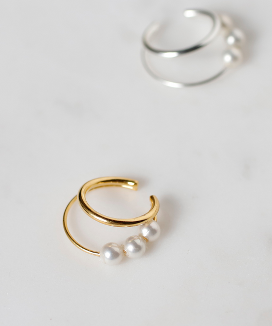 Three-grain Pearl Ear Cuff [Stainless Steel]