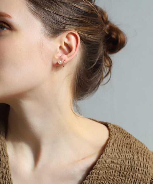 [Eligible for Gift] Freshwater Pearl × Coil Earrings [10K]