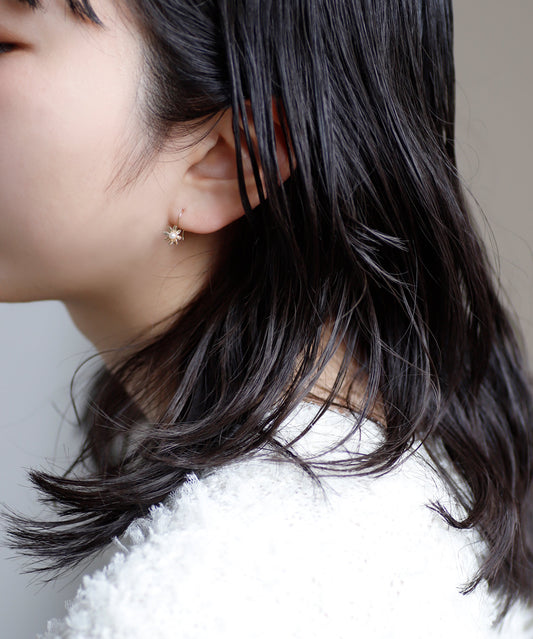 [Eligible for Gift] Pearl × Flower Hook Earrings [10K]
