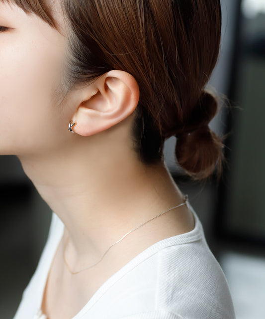 [Eligible for Gift] Combination Color Cross Line Earrings [10K / Platinum]