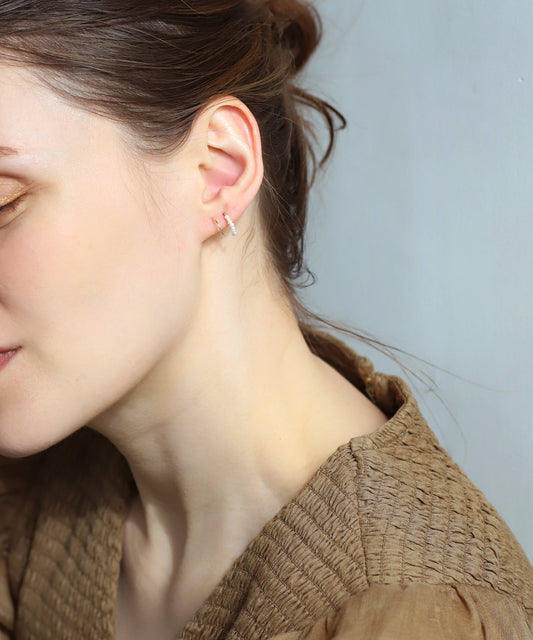 [Eligible for Gift] Combination Color Hoop Earrings [10K / Platinum]