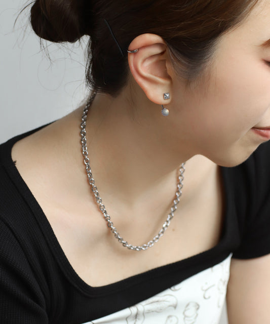 Gemstone Back Catch Earrings [Stainless Steel]