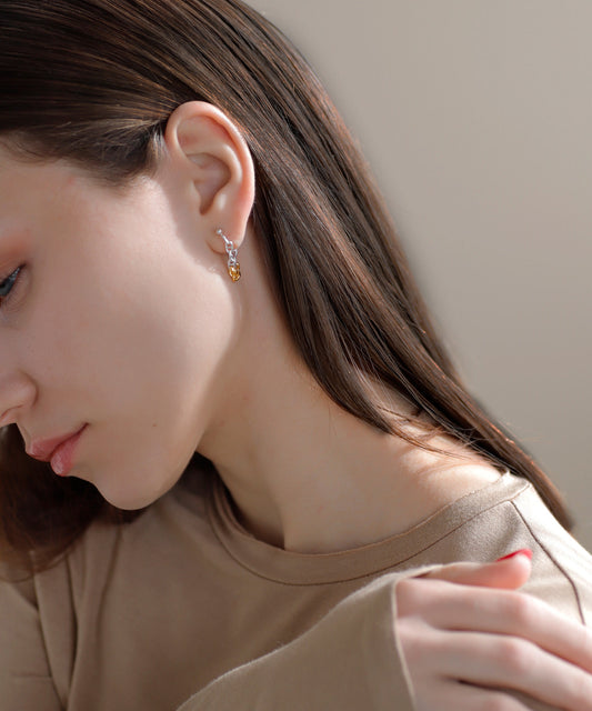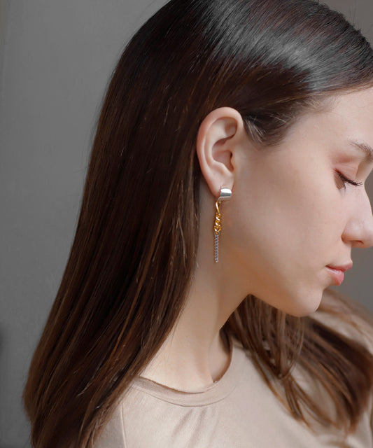 Two-Tone Chain Back Catch Earrings