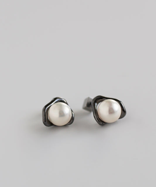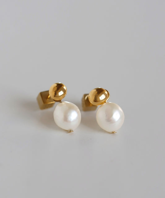 Pearl & Volume Metal Earrings [Surgical Stainless Steel]