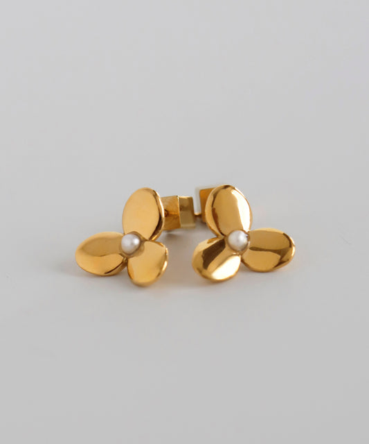 Pearl & Metal Flower Earrings [Surgical Stainless Steel]