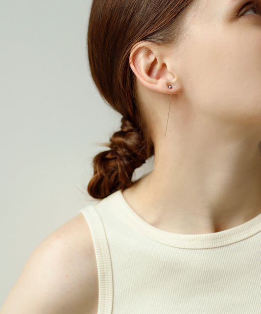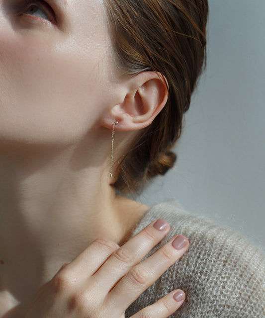 [Eligible for Gift] Gemstone × Chain Back Catch Earrings [10K]