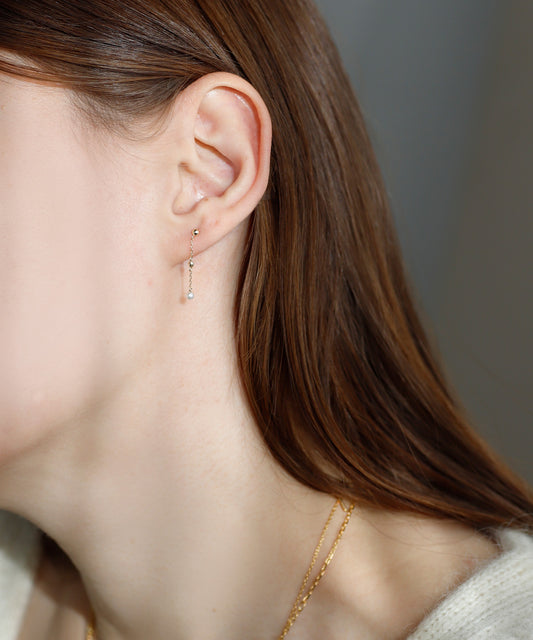 [Eligible for Gift] Freshwater Pearl Chain Earrings [10K]