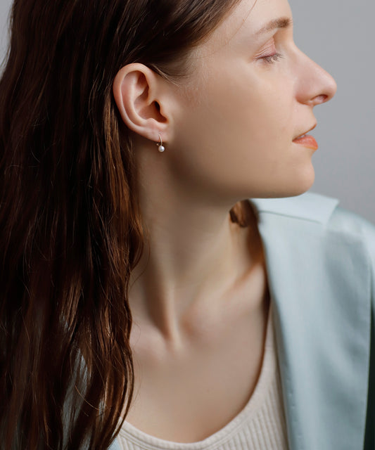 [Eligible for Gift] Pearl × U line Earrings [10K]