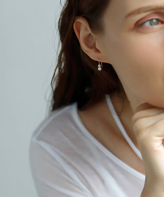 [Eligible for Gift] Double Pearl Hook Earrings [10K]