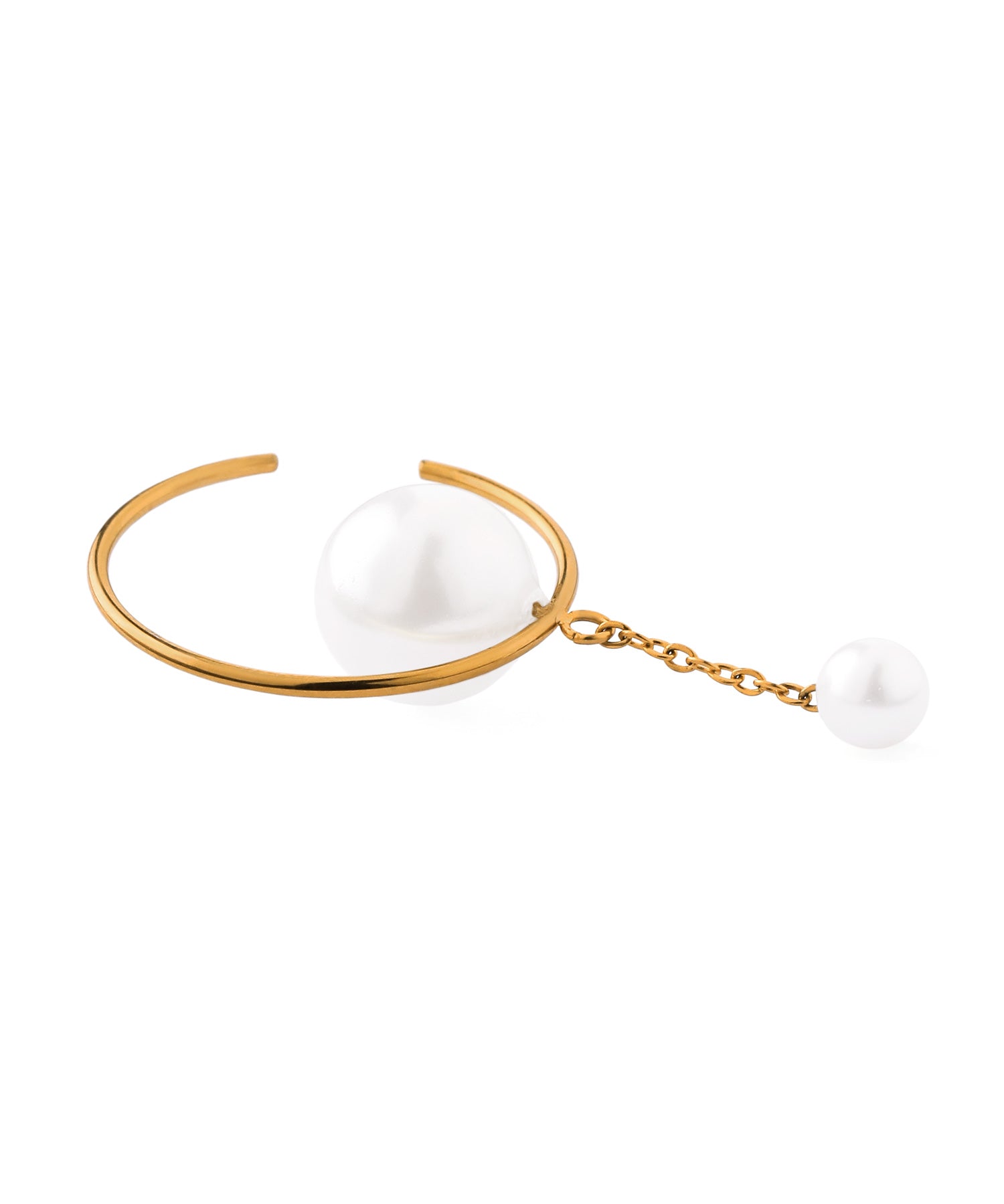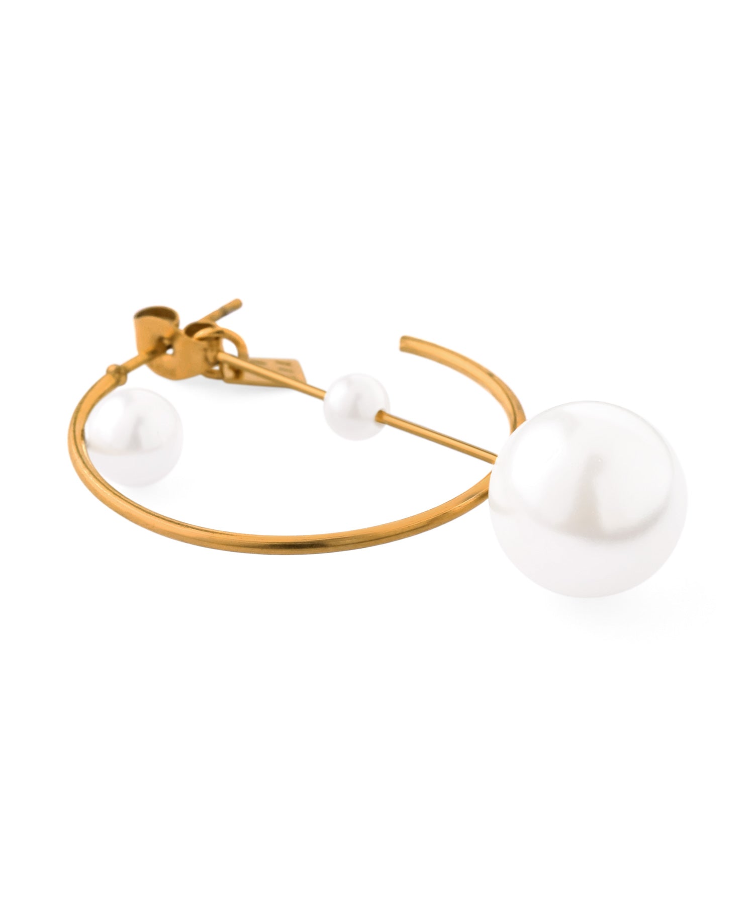 Asymmetric Pearl Hoop Earrings [Surgical Stainless Steel]