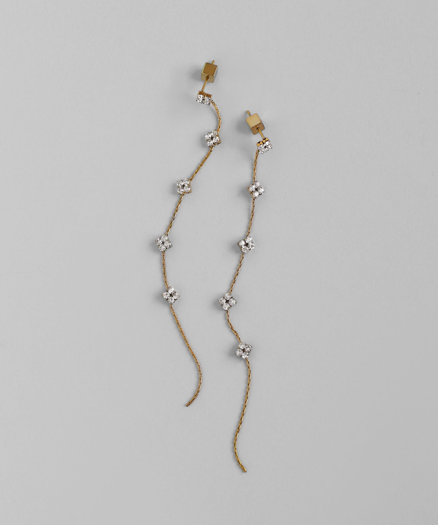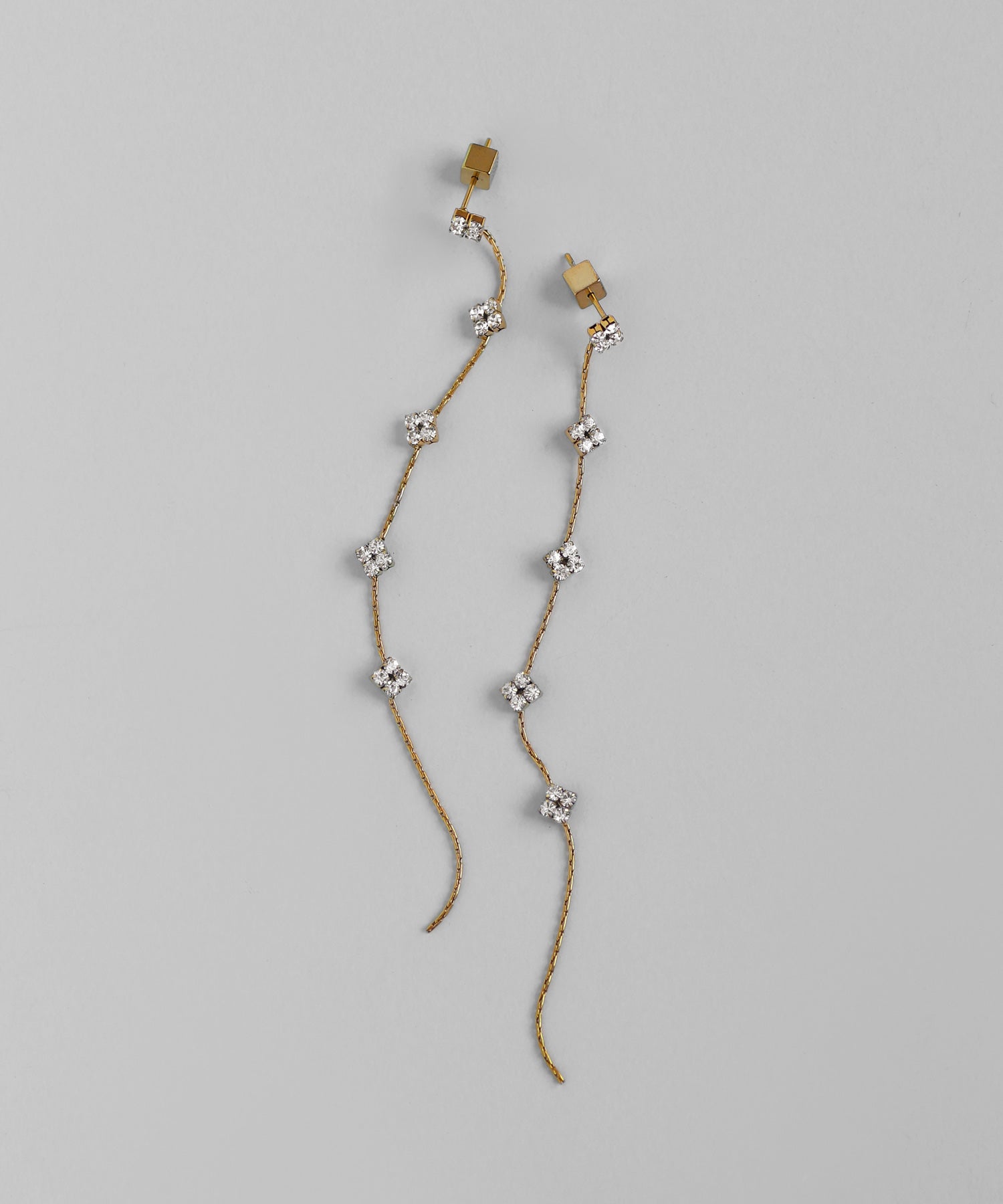 【Online Exclusive】Bijou Flower Chain Earrings [Stainless Steel]