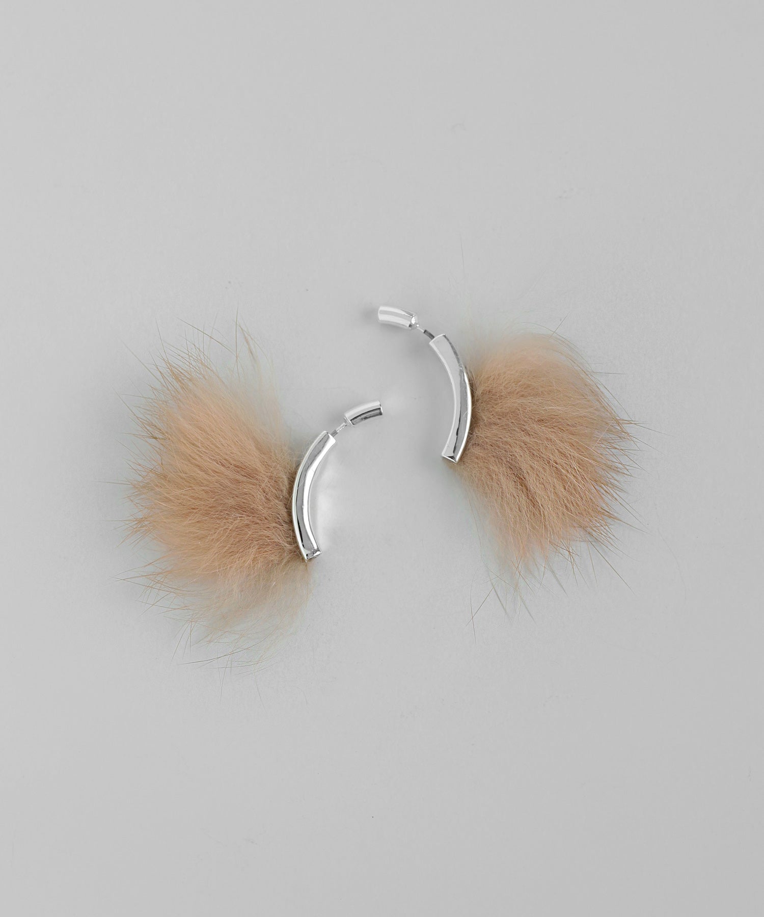 【Beige】Eco Fur, Alloy (925 Silver coating / Nickel-free / Stainless steel post)
