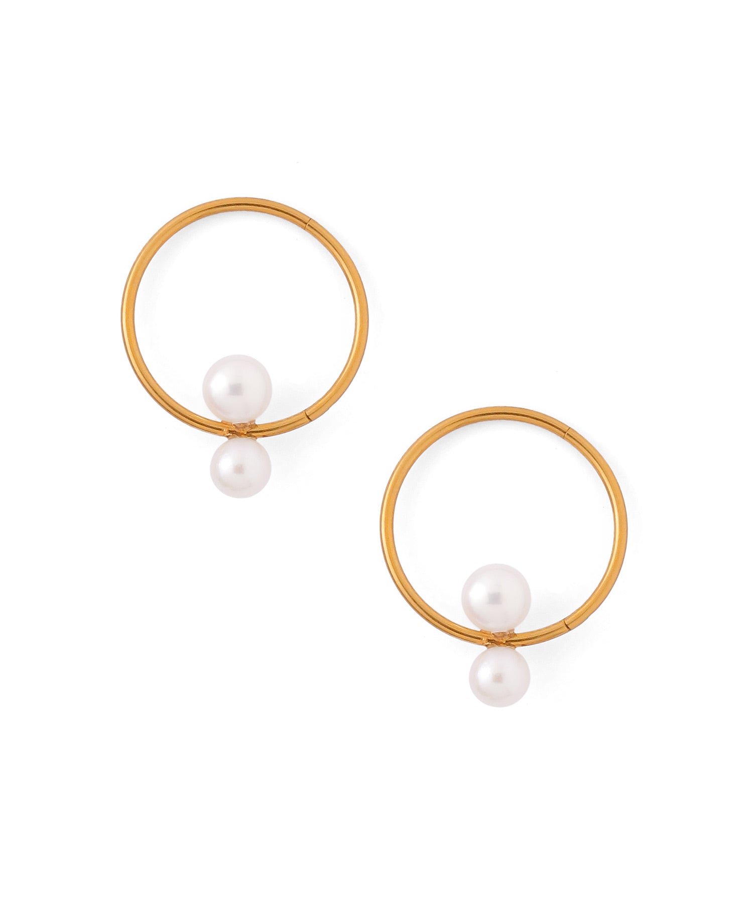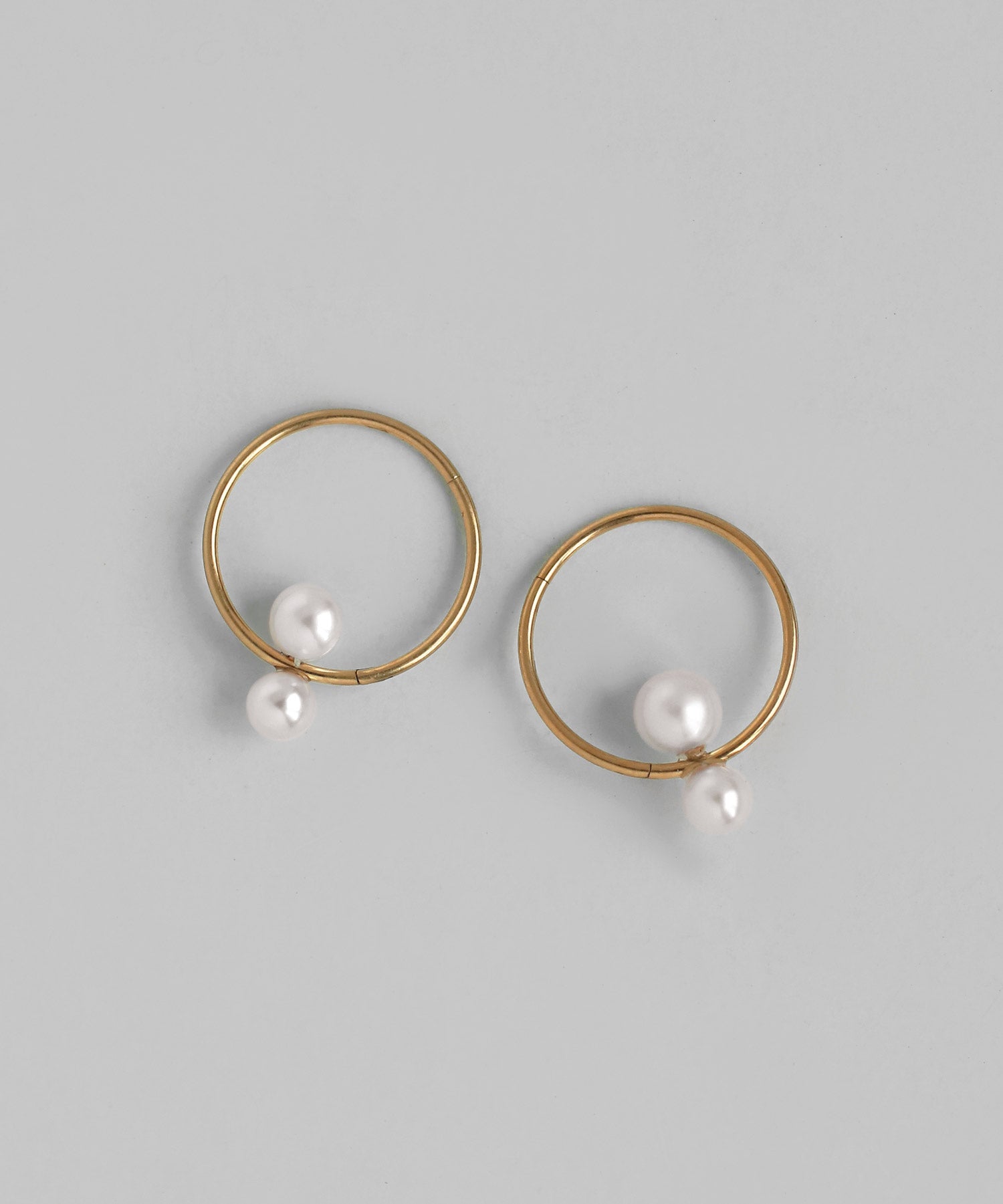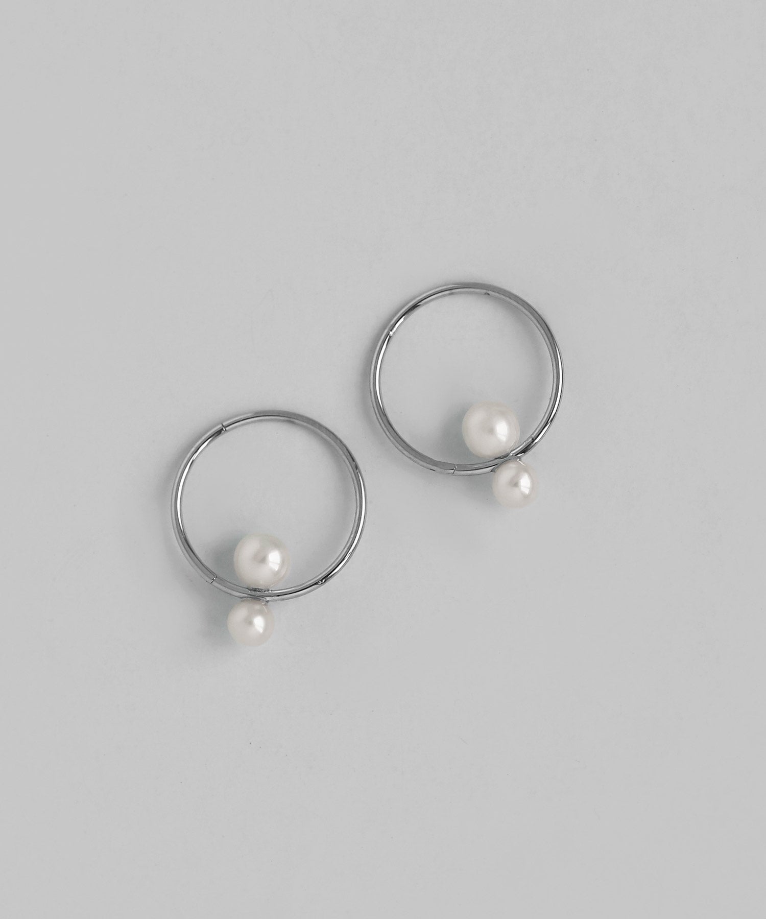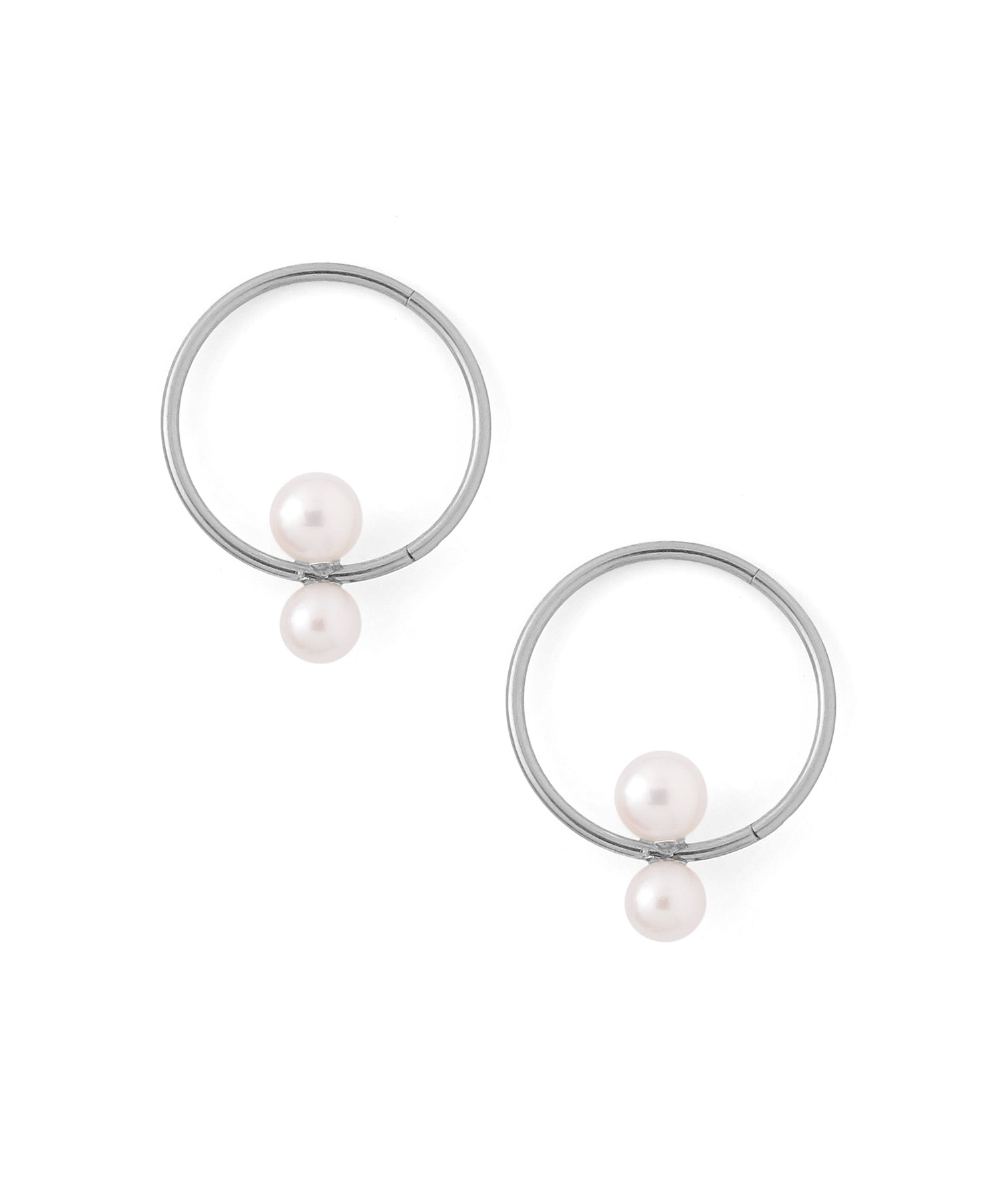 Double Pearl Hoop Earrings [Stainless Steel] [UMU]